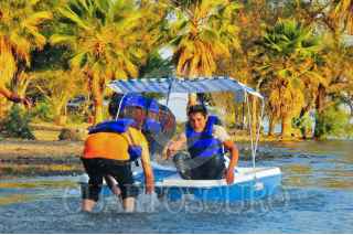 AJIJIC, JALISCO, 22FEBRERO2011.- Como parte de las actividades turísticas del Lago de Chapala, se han colocado una serie de atractivos como botes con pedales o kayac para que la gente se pase un buen rato disfrutando de la belleza natural que posee la zona. FOTO: MARIA DI PAOLA BLUM/CUARTOSCURO.COM