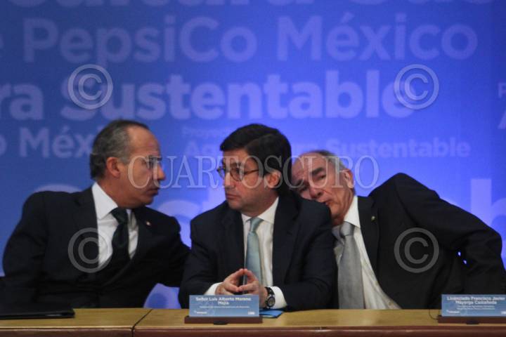 MÉXICO, D.F., 22FEBRERO2011.- Felipe Calderón, Presidente de México, durante la firma de convenios entre PepsiCo y el Banco Internacional de Desarrollo. FOTO: ENRIQUE ORDÓÑEZ/CUARTOSCURO.COM