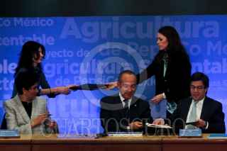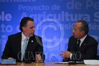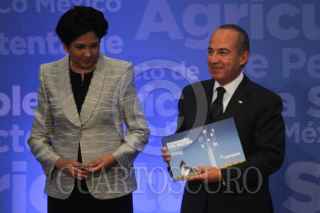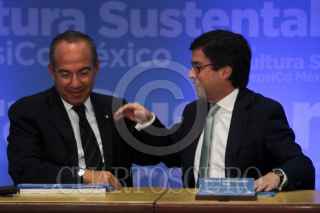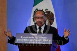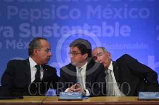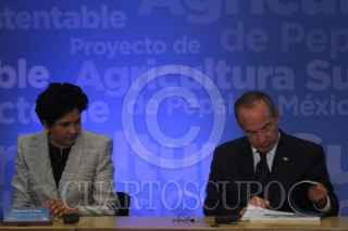 MÉXICO, D.F., 22FEBRERO2011.- Felipe Calderón, Presidente de México, durante la firma de convenios entre PepsiCo y el Banco Internacional de Desarrollo. FOTO: ENRIQUE ORDÓÑEZ/CUARTOSCURO.COM