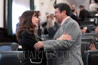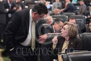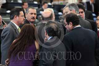 MÉXICO D.F. 22FEBRERO2011.- El senador Carlos Navarrete conversa con senadores del PRI durante la sesión ordinaria del Senado de la República. FOTO: CUARTOSCURO.COM