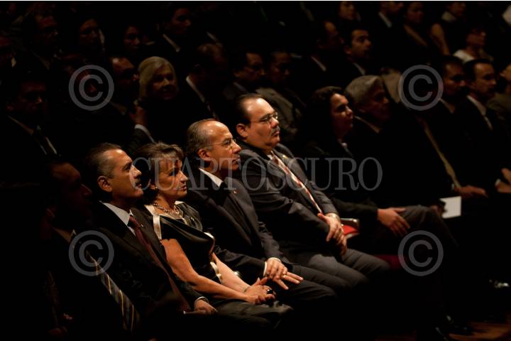 MÉXICO, D.F., 23FEBRERO2011.- Felipe Calderón Hinojosa, Presidente de México, acompañado de Yoloxóchitl Bustamante Díez, directora del Instituto Politécnico Nacional, encabezo la Celebración del 75 Aniversario de la Creación del IPN la cual se celebro en el Palacio de Bellas Artes. FOTO: GUILLERMO PEREA/CUARTOSCURO.COM
