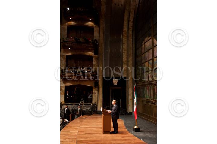 MÉXICO, D.F., 23FEBRERO2011.- Felipe Calderón Hinojosa, Presidente de México, acompañado de Yoloxóchitl Bustamante Díez, directora del Instituto Politécnico Nacional, encabezo la Celebración del 75 Aniversario de la Creación del IPN la cual se celebro en el Palacio de Bellas Artes. FOTO: GUILLERMO PEREA/CUARTOSCURO.COM