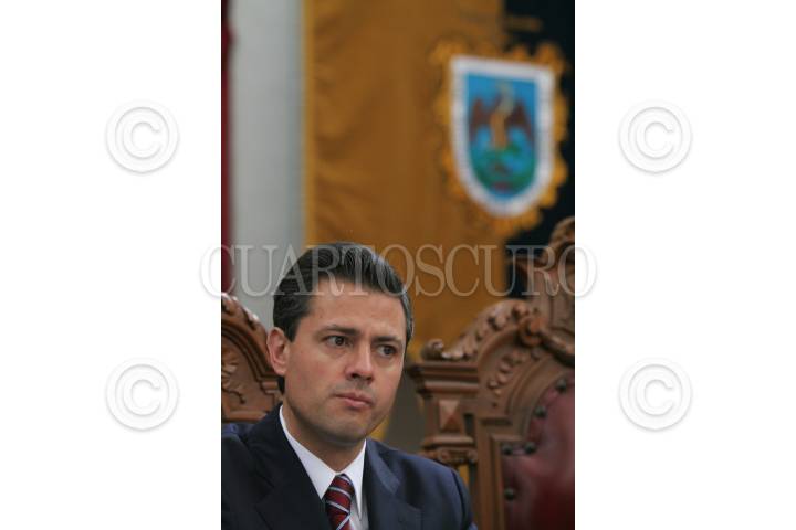 MÉXICO, D.F, 23FEBRERO2011.- Enrique Peña Nieto, gobernador del Estado de México, José Narro Robles, rector de la Universidad Nacional Autónoma de México y Eduardo Gasca Pliego, rector de la Universidad Autónoma del Estado de México, recorrieron el pasillo dedicado a estado mexiquense en la Feria Internacional del Libro del Palacio de Minería. FOTO: MOISÉS PABLO/CUARTOSCURO.COM