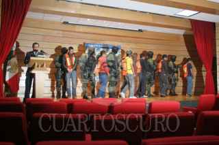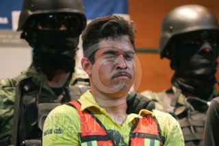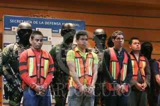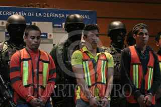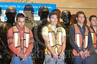 MÉXICO, D.F., 23FEBRERO2011.- Personal de la Secretaría de la Defensa Nacional y la Procuraduría General de la República presentaron ante los medios de comunicación a Julián Zapata Espinoza, alías el Piolín, presunto asesino de Jaime Zapata, agente de la Oficina de Aduanas y Control Migratorio de Estados Unidos ejecutado la semana pasada en San Luis Potosi. Junto con el "Piolin" fueron detenidos cinco hombres presuntos integrantes de la célula delictiva de "Los Zetas". FOTO: SAÚL LÓPEZ/CUARTOSCURO.COM