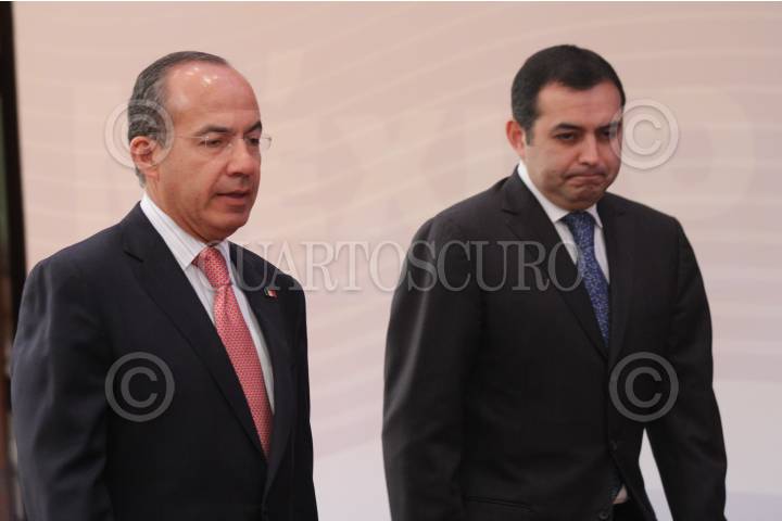 MÉXICO, D.F., 24FEBRERO2011.- Ernesto Cordero Arroyo, Secretario de Hacienda y Crédito Público; y Felipe Calderón Hinojosa, presidente de México; anunciaron incentivos fiscales para el sector agrícola que fue afectado por las heladas en el estado de Tamaulipas. FOTO: IVÁN STEPHENS/CUARTOSCURO.COM