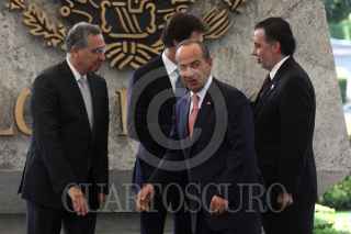 MÉXICO, 24FEBRERO2011.- El presidente Felipe Calderón al termino del anuncio del plan de inversión 2011 de Wal-Mart de México y Centroamerica que se realizo en la residencia oficial de Los Pinos. FOTO: RODOLFO ANGULO/CUARTOSCURO.COM