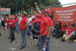MÉXICO, D.F., 24FEBRERO2011.- Integrantes del Sindicato Independiente del Colegio de Postgraduados de la Universidad Nacional Autónoma de Chapingo, se manifestaron frente a las instalaciones de la Secretaria del Trabajo y Previsión Social bloqueando carriles centrales de Periférico donde exigieron que las autoridades federales cumplan con una serie de acuerdos pactados en 2009. FOTO: SAÚL LÓPEZ/CUARTOSCURO.COM