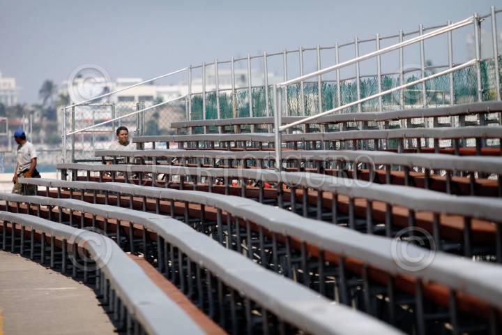 VERACRUZ, VERACRUZ., 24FEBRERO2011.- A pocos días de que inicie la fiesta más representativa del estado, las estructuras que fungen como gradas se encuentran instaladas en su totalidad, las cuales servirán para acomodar aproximadamente a un millón de personas durante los desfiles del Carnaval Veracruz 2011, mismo que se realizará del 1 al 9 de Marzo. FOTO: FÉLIX MÁRQUEZ/CUARTOSCURO.COM