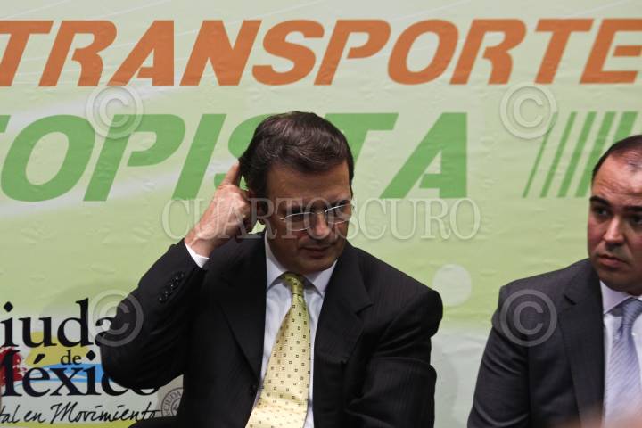 MÉXICO, D.F., 24FEBRERO2011.- Marcelo Ebrard Casaubon, Jefe de Gobierno del Distrito Federal, encabezó la presentación del Programa Integral de Movilidad del Transporte Público "Autopista Urbana". Esto se realizó en el patio del Antiguo Palacio del Ayuntamiento en el centro de la Ciudad de México. FOTO: MISAEL VALTIERRA/CUARTOSCURO.COM