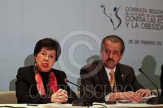 MÉXICO, 25FEBRERO2011.- Margaret Chan, directora general de la Organización Mundial y José Ángel Cordoba Villalobos, secretario de Salud durante una conferencia de prensa al termino de la ceremonia de clausura de la Consulta Regional de Alto Nivel de las Americas contra las enfermedades crónicas no transmisibles y la obesidad que se realizo en el hotel St. Regis. FOTO: RODOLFO ANGULO/CUARTOSCURO.COM