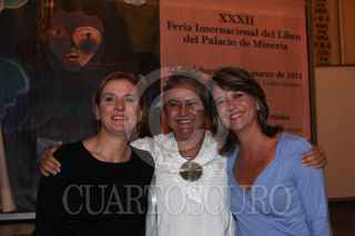 MÉXICO, D.F., 26FEBRERO2011.- Beatriz Gutiérrez Müller, esposa de Andres Manuel López Obrador, Laura Esquivel y Adriana Malvido durante la presentacion del libro Larga Vida al Sol de Beatriz Gutierrez que se realizo como parte de las actividades de la Feria del Libro del Palacio de Minería. FOTO: RODOLFO ANGULO/CUARTOSCURO.COM