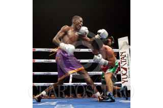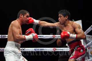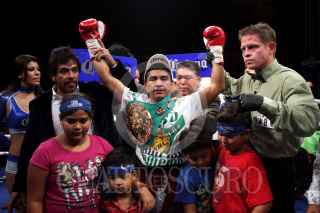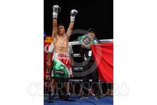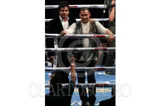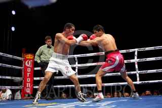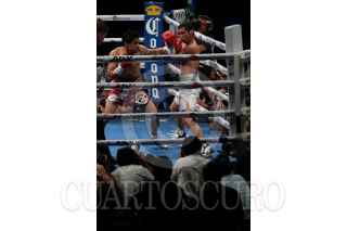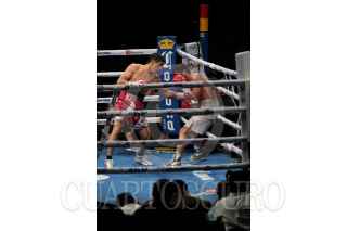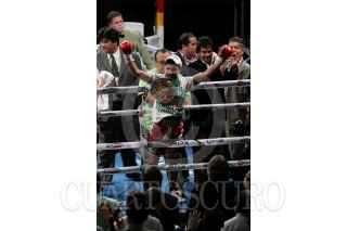MÉRIDA, YUCATÁN, 26FEBRERO2011.- En una pelea dominada desde el primer asalto por el yucateco Gilberto Keb quien venció al tabasqueño Antonio el "Jaguar" Aguirre para retener el cetro de peso minimosca del Consejo Mundial de Boxeo ante unas tres mil pesonas en la catedral del boxeo yucateco "Poliforum Zamná". FOTO: FRANCISCO BALDERAS/CUARTOSCURO.COM
