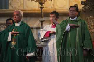 MÉXICO, D.F., 27FEBRERO2011.- El Cardenal Norberto Rivera, oficio la homilía dominical en la Catedral Metropolitana donde se realizaron los honores a la bandera con elementos de la Policía Federal. FOTO: ENRIQUE ORDÓÑEZ/CUARTOSCURO.COM