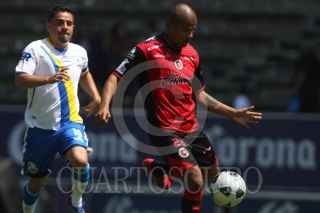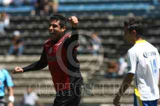 PUEBLA, PUEBLA, 27FEBRERO2011.- El equipo universitario Lobos BUAP, sufrió un descalabro tras ser vencidos 1 gol contra 2 ante la visita de los Xoloscuintles de Tijuana en el estadio Cuauhtémoc, juego correspondiente a la jornada 9 del torneo clausura 2011 de la liga de ascenso. En la imagen: el delantaro Luis Orozco, celebra la segunda anotación a favor de los Xoloscuintles. FOTO: FRANCISCO GUASCO/CUARTOSCURO.COM