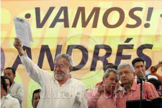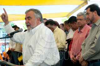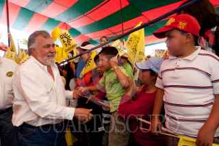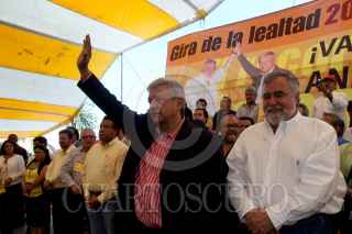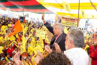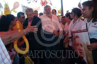 TULTITLÁN, EDO DE MÉX., 27FEBRERO2011.- Andrés Manuel López Obrador excandidato a la presidencia de la republica y Alejandro Encinas Rodríguez, Diputado Federal del PRD, acompañado de integrantes del PT y Convergencia realizaron el cierre de la “Gira de la Lealtad” en diversos municipios del Estado de México. FOTO: GUILLERMO PEREA/CUARTOSCURO.COM