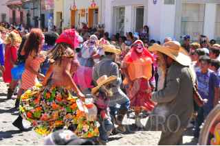 AJIJIC, JALISCO, 27FEBRERO2011.- Bajo un cielo despejado, empezó este domingo y seguirá por otros tres, el desfile de la tradicional Zayaca que se realiza en el pueblo de Ajijic coincidiendo con la festividad próxima del carnaval. Esta costumbre viene de la época colonial cuando los indígenas se burlaban de las vestimentas de los españoles y en la temporada del carnaval para no incurrir en castigos recorrían las calles, echándole harinas y confeti en las caras a la gente. FOTO:MARIA DI PAOLA BLUM/CUARTOSCURO.COM