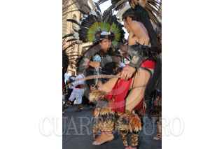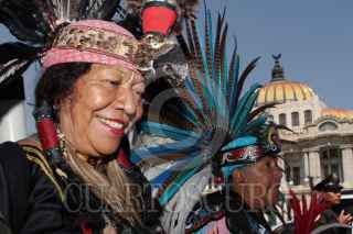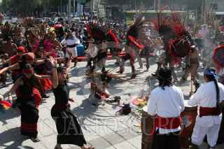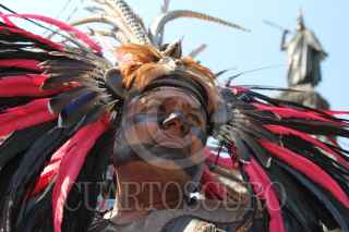 MÉXICO, D.F., 28FEBRERO2011.- Como parte del 486 aniversario luctuoso de Cuauhtemoc, en el monumento erigido a su nombre se realizó una ceremonia donde hubo una serie de bailes para conmemorar la muerte del ultimo emperador azteca. FOTO: ENRIQUE ORDÓÑEZ/CUARTOSCURO.COM