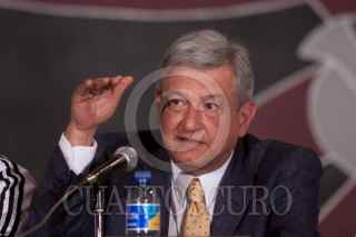 MÉXICO, D.F., 28FEBRERO2011.- Andrés Manuel López Obrador, ex candidato presidencial, estuvo presente en la mesa redonda "la izquierda en el 2012" realizada en la Facultad de Ciencias Políticas y Sociales de la UNAM. FOTO: IVÁN STEPHENS/CUARTOSCURO.COM