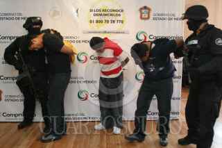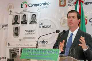 TOLUCA, ESTADO DE MÉXICO., 28FEBRERO2011.- Alfredo Cervantes Castillo. procurador de justicia del Estado de México, presentó ante los medios de comunicación a tres sujetos integrantes de la banda delictiva "Los Torreones" con la que presuntamente se les vincula con el asesinato de cuatro personas el pasado 18 de Febrero en Cuatitlan Izcalli. FOTO: SAÙL LÓPEZ/CUARTOSCURO.COM