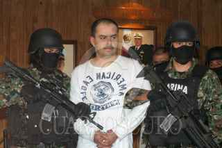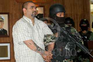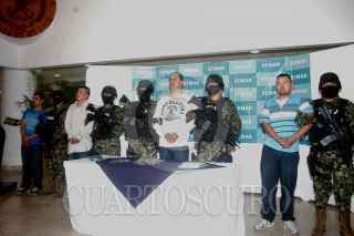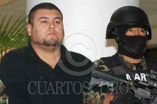 MÉXICO, D.F., 28FEBRERO2011.- Sergio Antonio Moras, alias “El Toto” supuesto integrantes del grupo delictivo de los Zetas y jefe de Julián Zapata Espinoza, alias “El Piolín” presunto asesino del agente norteamericano, fue presentado en las instalaciones la Secretaría de Marina, detenido por elementos de la Armada de México. La Secretaria presentó en total a 6 presuntos criminales que formaban parte del grupo delictivo conocido como "Los Zetas" y que fueron detenidos en un operativo realizado este domingo por parte de la Marina en Saltillo, Coahuila. FOTOS: LUIS CARBAYO/CUARTOSCURO.COM