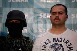 MÉXICO, D.F., 28FEBRERO2011.- Sergio Antonio Moras, alias “El Toto” supuesto integrantes del grupo delictivo de los Zetas y jefe de Julián Zapata Espinoza, alias “El Piolín” presunto asesino del agente norteamericano, fue presentado en las instalaciones la Secretaría de Marina, detenido por elementos de la Armada de México. La Secretaria presentó en total a 6 presuntos criminales que formaban parte del grupo delictivo conocido como "Los Zetas" y que fueron detenidos en un operativo realizado este domingo por parte de la Marina en Saltillo, Coahuila. FOTOS: IVAN MENDEZ/CUARTOSCURO.COM