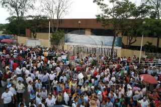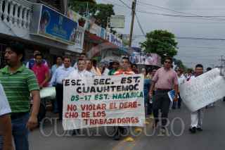 VILLAHERMOSA, TABASCO, 01MARZO2011.- Varios centenares de educadores de los 17 municipios del estado realizaron una marcha y manifestación en las instalaciones de la SEP local en donde exigen que no violenten sus derechos como trabajadores, los cuales no han sido respetados por Beatriz Luque; secretaria de educación en el estado. FOTO: MARCO POLO GUZMAN HERNANDEZ/CUARTOSCURO.COM
