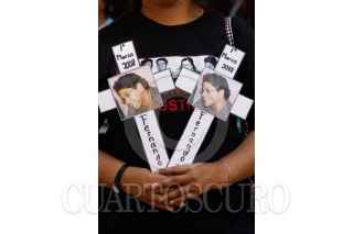 MÉXICO, D. F., 01MARZO2011.- Padres y familiares de los estudiantes que murieron durante el bombardeo que realizó el gobierno de Colombia en Sucumbíos, Ecuador, para detener al líder del las Fierzas Armadas Revolucionarias de Colombia (FARC), se manifestaron en la embajada de Colombia a tres años de estos hechos para pedir justicia. Habitantes de San Salvador Atenco acudieron a apoyar la manifestación donde estuvo presente Ignacio del Valle. FOTO: IVÁN STEPHENS/CUARTOSCURO.COM