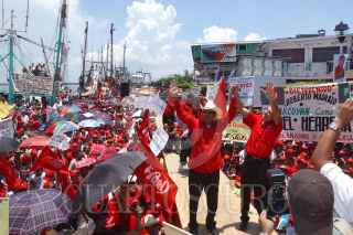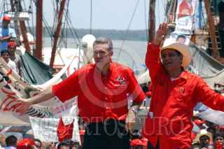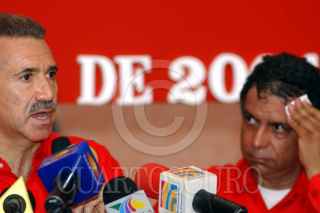 Veracruz, 04 JULIO 2004.- Roberto Madrazo, presidente nacional del PRI y Fidel Herrera candidato a la gubernatura del Estado en conferencia luego de la gira en apoyo a canditados a la alianza fidelidad por Veracruz. FOTO: Juan Flores/CUARTOSCURO.COM