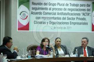 MÉXICO, D.F., 02MARZO2011.- Los senadores panistas, María Beatriz Zavala Peniche y Federico Döring Casar, asistieron a la reunión del Grupo Plural de Trabajo para dar seguimiento al proceso de negociaciones del Acuerdo Comercial Antifalsificaciones "ACTA", con representantes del Sector Privado, Cámaras y Organizaciones Empresariales. FOTO: CUARTOSCURO.COM