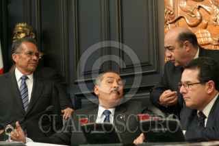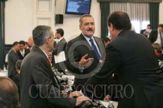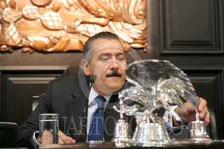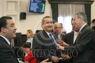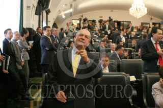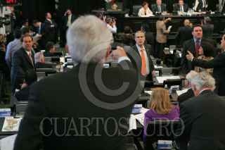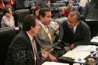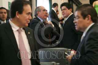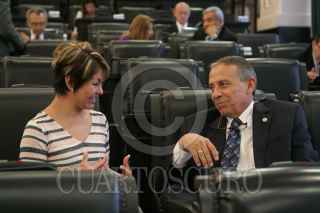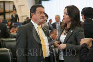 MÉXICO, D.F., 03MARZO2011.- El coordinador perredista Carlos Navarrete y la priista Margarita Villaescusa, durante la sesión en la Cámara de Senadores. FOTO: MOISÉS PABLO/CUARTOSCURO.COM