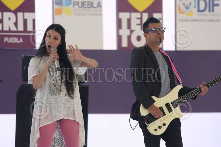 SAN ANDRES CHOLULA, PUEBLA, 03MARZO2011.- El grupo de pop mexicano, Belanova, se presentó en concierto durante la ceremonia de colocación de la primera piedra del CRIT Puebla. FOTO: FRANCISCO GUASCO/CUARTOSCURO.COM