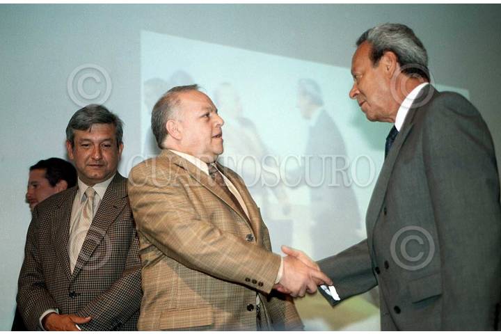 Jesus Silva Herzog del PRI , Santiago Creel del PAN , Alejandro Ordorica del PARM , Tere Vale del PSD yAndres Manuel Lopez Obrador del PRD , asistieron a un debate entre candidatos al gobierno capitalino que organizo la universidad Iberoamerica.