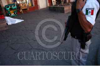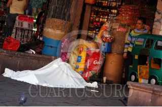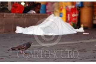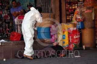 ZACATECAS, ZACATECAS, 04MARZO2011.- Ayer por la tarde una mujer de nombre Verónica Antonia Moreno, de 32 años, fue asesinada en la Plazuela de Zamora del Centro Histórico de la ciudad. De acuerdo con algunos testigos, la mujer discutía con un hombre y comenzó a forcejear con él, en ese momento el sujeto sacó un cuchillo y comenzó a apuñarla en el pecho y el cuello, la víctima se comenzó a desangrar y perdió la vida en el lugar, el asesino se dio a la fuga. FOTO: ADOLFO VALTIERRA/CUARTOSCURO.COM