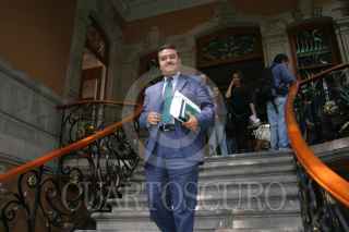 México, D. F. 05 Julio 2004.- Agustín Guerrero presidente PRD en el D. F., a su salida de la reunión que sostuvieron lideres de cinco fuerza políticas en el D. F. para hablar sobre la seguridad. FOTO: Nelly Salas/CUARTOSCURO.COM