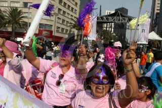 MÉXICO, D.F., 05MARZO2011.- Decenas de mujeres participaron en la caravana que partio del Ángel de la Independencia con rumbo al Monumento a la Revolución en el que se realizo un evento artístico y cultural por motivo del Día Internacional de la Mujer que organizó el Instituto de las Mujeres del Distrito Federal. FOTO: RODOLFO ANGULO/CUARTOSCURO.COM