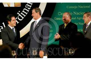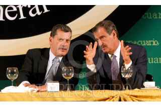 México, D.F. 05 Julio 2004.- Lázaro Cárdenas Batel, gobernador de Michoacan, y Fernando Canales, secretario de Economia, durante la comida de la XXI Asamblea General Ordinaria del Consejo Nacional Agropecuario. FOTO: Juan Pablo Zamora/CUARTOSCURO.COM