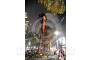 MÉXICO, D.F., 07MARZO2011.- Un trabajador de la de la CFE resulto lesionado con quemaduras de 3er grado, al explotar la mufa en la que realizaban labores de mantenimiento, frente a las oficinas Administrativas de la PGR ubicadas en el numero 211 de Reforma, por lo que al estallar incendio una palmera. Esto provoco fuerte movilización de servicios de emergencia y policíacos ya que se pensaba que había sido un atentado a dichas oficinas. FOTO: LUIS CARBAYO/CUARTOSCURO.COM