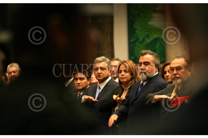 México, D.F. 06 JULIO 2004.- Andrés Manuel López Obrador, jefe de Gobierno del DF, se retira al finalizar su informe trimestral de actividades. Los asistentes le manifestaron todo su apoyo. FOTO: Sandra Perdomo/CUARTOSCURO.COM