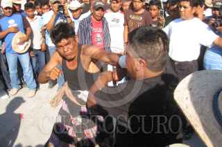 ZITLALA, GUERRERO, 08MARZO2011.- Habitantes del municipio de Zitlala, que en nahuatl significa "Lugar de las Estrellas", se realizó la "Pelea de los Xochimilcas", un enfrentamiento a puño limpio en las que participan niños, mujeres y ancianos. Estas peleas se realizan en la plaza principal de la población para sacar los rencores acumulados en sus almas y al día siguiente, una vez purificados, puedan recibir la cruz en el miércoles de ceniza. FOTO: OSCAR ALVARADO/CUARTOSCURO.COM