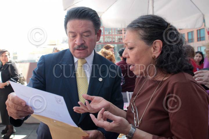 MÉXICO, D.F., 09MARZO2011.- Carlos Navarrete, coordinador parlamentario del PRD departió con Diana Bernal Ladrón de Guevara, magistrada del Tribunal Federal de Justicia Fiscal y Administrativa, durante el Encuentro con Mujeres: La Agenda de Género Pendiente. FOTO: CUARTOSCURO.COM