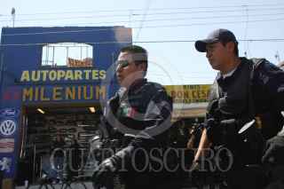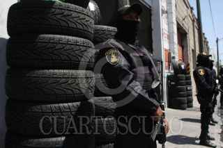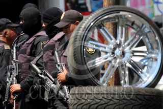 PUEBLA, PUEBLA, 09MARZO2011.- Cerca de 500 elementos de la policía estatal, AFI, policía metropolitana y policía judicial, realizaron un operativo en la zona de autopartes de calle 46 poniente para detectar mercancía apócrifa. En el lugar el titular de seguridad pública en el estado, Ardelio Vargas Fosado dirigió a los efectivos que aseguraron 20 toneladas de autopartes, 30 vehículos y 46 personas detenidas por presunto manejo ilícito de la mercancía. FOTO: FRANCISCO GUASCO/CUARTOSCURO.COM