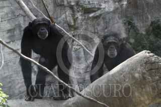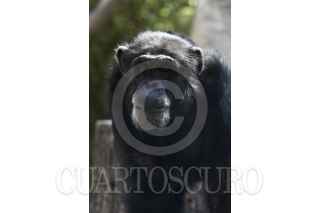 MÉXICO, D.F., 10MARZO2011.- Dos hembras de chimpancé llamadas Aby y Kenia llegaron al Zoológico de Chapultepec a conformar una nueva familia con el chimpancé residente del zoológico llamado Lio, por lo cual los tres primates comparten juntos el mismo recinto. FOTO: RODOLFO ANGULO/CUARTOSCURO.COM
