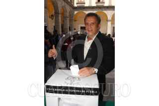 PUEBLA, PUEBLA, 10MARZO2011.- Enrique Agüera Ibañez, rector de la máxima casa de estudios del estado, emitió su sufragio en el edificio Carolino de la Benemérita Universidad Autónoma de Puebla (BUAP) para la elección del nuevo consejo universitario, periódo 2011-2013. FOTO: FRANCISCO GUASCO/CUARTOSCURO.COM