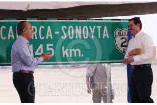 CABORCA, SONORA, 10MARZO2011.- El presidente Felipe Calderón, acompañado de Guillermo Padres, gobernador de la entidad durante la inauguración y modernización de la carretera Caborca - Sonoyta. FOTO: ALFREDO GUERRERO/CUARTOSCURO.COM