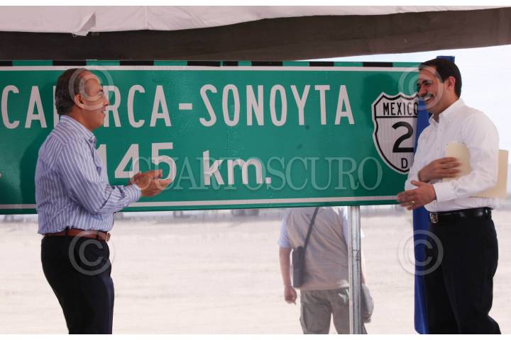 CABORCA, SONORA, 10MARZO2011.- El presidente Felipe Calderón, acompañado de Guillermo Padres, gobernador de la entidad durante la inauguración y modernización de la carretera Caborca - Sonoyta. FOTO: ALFREDO GUERRERO/CUARTOSCURO.COM