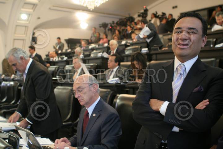 MÉXICO, D.F., 10MARZO2011.- José González Morfín, coordinador de los senadores panistas, cabildeando con Manuel Velasco, senador del PVEM, en la sesión del Senado de la República. FOTO: MOISÉS PABLO/CUARTOSCURO.COM
