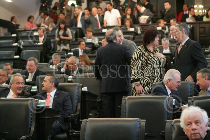 MÉXICO, D.F., 10MARZO2011.- José González Morfín, coordinador de los senadores panistas, cabildeando con Manuel Velasco, senador del PVEM, en la sesión del Senado de la República. FOTO: MOISÉS PABLO/CUARTOSCURO.COM