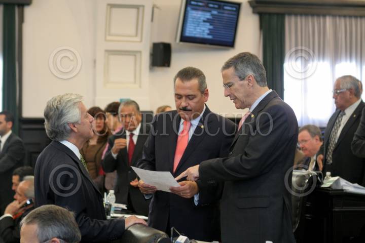 MÉXICO, D.F., 10MARZO2011.- José González Morfín, coordinador de los senadores panistas, cabildeando con Manuel Velasco, senador del PVEM, en la sesión del Senado de la República. FOTO: MOISÉS PABLO/CUARTOSCURO.COM