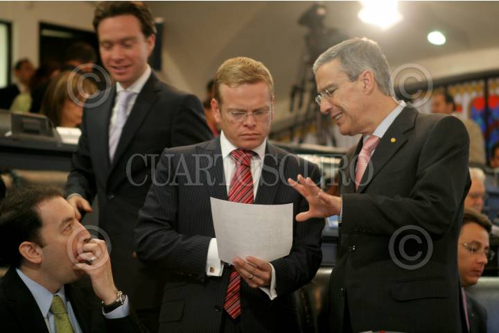 MÉXICO, D.F., 10MARZO2011.- José González Morfín, coordinador de los senadores panistas, cabildeando con Manuel Velasco, senador del PVEM, en la sesión del Senado de la República. FOTO: MOISÉS PABLO/CUARTOSCURO.COM