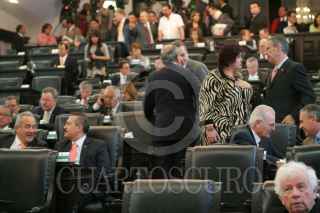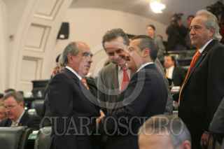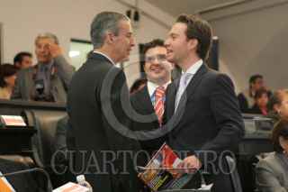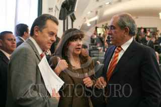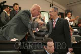 MÉXICO, D.F., 10MARZO2011.- José González Morfín, coordinador de los senadores panistas, cabildeando con Manuel Velasco, senador del PVEM, en la sesión del Senado de la República. FOTO: MOISÉS PABLO/CUARTOSCURO.COM